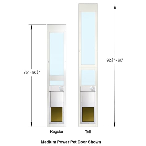 Plus for added security these patio panel dog doors feature a reversible lock for left or right sliding doors. It can fit sliding glass panels 93 75 inches to 96 5 inches tall. Tall sliding glass aluminum door model 96patmw 211 24. For a sliding glass pet door shorter than about 75 or taller than about 96 please see custom dimension pet doors for more choices.